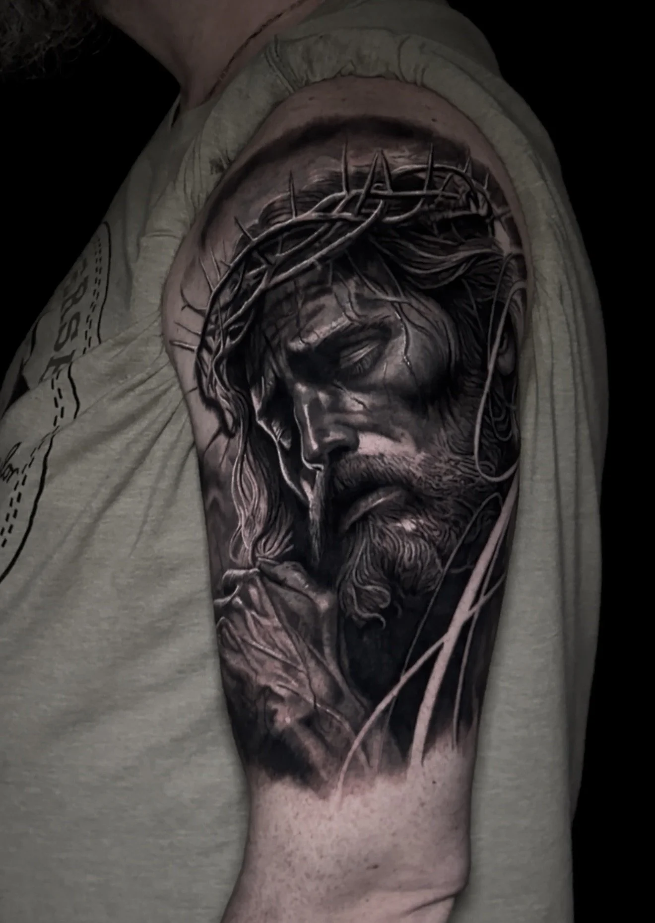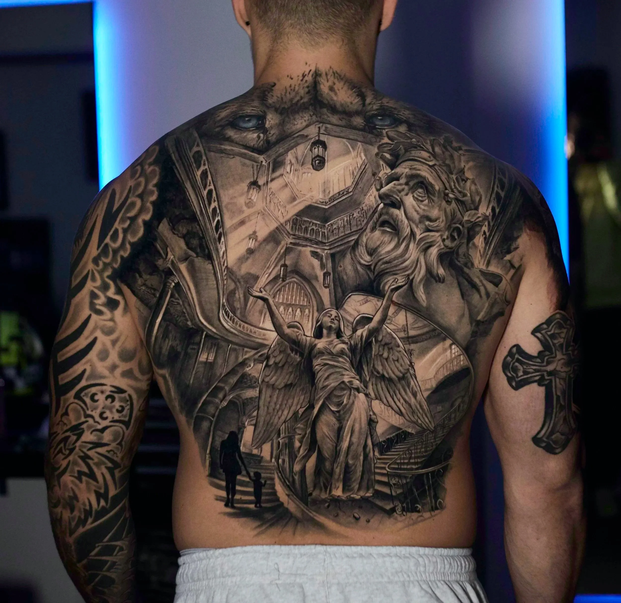 Eventho I specialized in black and grey pieces, I enjoy a good cover-up using opaque greys or color. I also enjoy fine line pieces or illustrative work. My focus at the moment is large black and grey realism pieces.